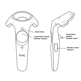 An area we really explored for this application was the interaction between the player and the Vive's controllers. This was one of the main reasons for the creation of Defender, and the controls for both games are detailed below.